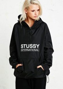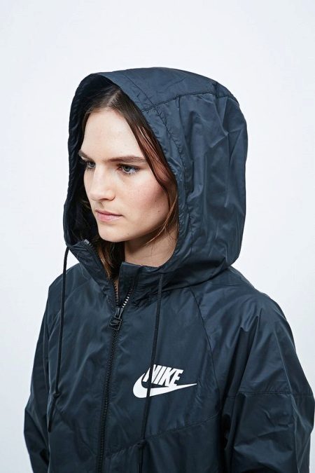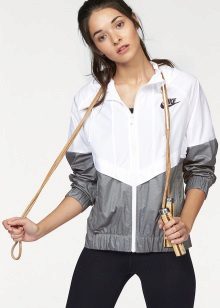 Short-hemmed windbreakers are very popular, they are in demand among young girls who are not afraid to show their figure. Choose a shortened windbreaker with an elastic band so that the cold wind does not penetrate under your clothes while running.