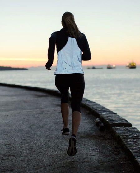 Usually we put on a windbreaker in the middle or at the end of autumn, when the mark on the thermometer drops to + 5 degrees. In this weather, you will not run in a T-shirt and shorts, so you should think about sports leggings (tights) that will protect your legs from cold air. They should fit your legs tight, sit perfectly on the figure. Many models have the presence of compression and ventilation properties, so you will be able to run easily and comfortably.