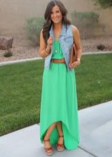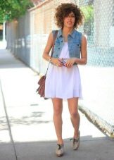 - Denim windbreaker with a light dress or sundress - This is a wonderful, bright combination for a warm summer day. Favorite sneakers, and graceful sandals on a heel will approach this along with.