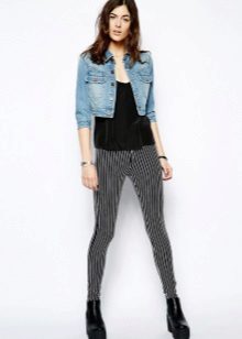 - Denim windbreaker with sweatpants and a T-shirt or sweatshirt - A good outfit for fans of an active lifestyle. Denim will soften the energetic sporty look a bit and make it more interesting. (picture link 3)