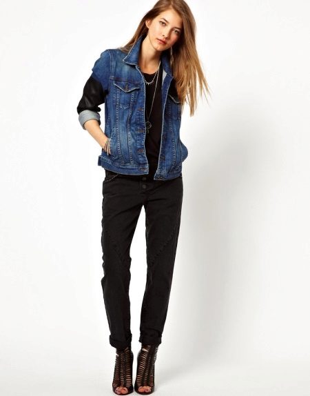 - For cool weather, a warmed denim windbreaker would be a great option. Pay attention to the now fashionable quilted jackets and vests - they are not only incredibly warm and comfortable, but also very stylish. Also interesting are models combined from denim and other materials, such as leather, knitwear or raincoat fabric.