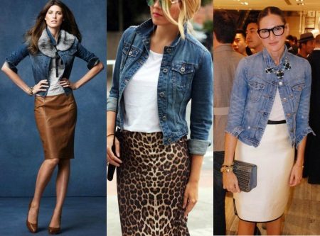 - Denim windbreaker with a strict skirt or trousers and shirt - in the wardrobe of a business woman, there should also be a place for practical things from denim. In an office with a lax dress code, a denim jacket would be appropriate. (picture link 2)