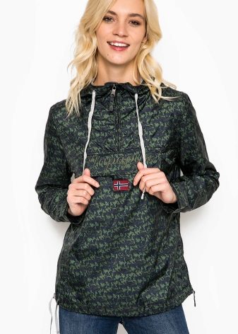 The sports windbreaker features a bright print, plenty of pockets, a zipper and a hood. As a rule, the style of such a windbreaker is shortened. It is light, as for sports this indicator is very important. Combine it with shorts or sweatpants.