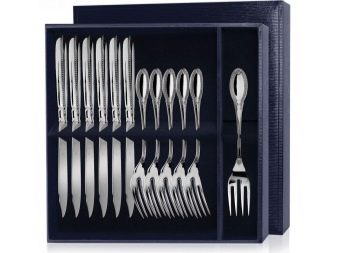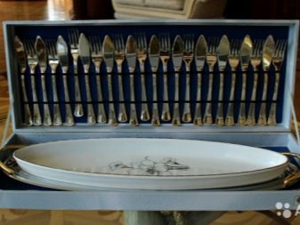 Now you can also purchase such exclusive services, however, those made of stainless steel are more widely used. Handles can be decorated with various patterns and gold or silver plating.