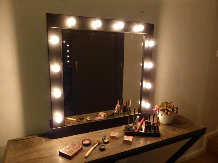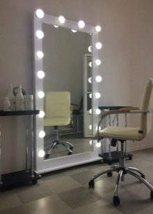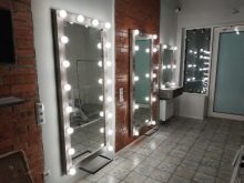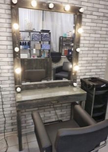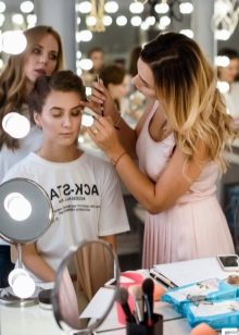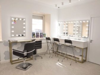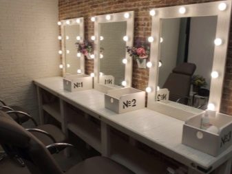 Recently, makeup artists are increasingly choosing mirrors in the style of dressing rooms with backlight. Such models are very fond of not only the masters, but also the customers themselves, because they create some kind of amazing atmosphere. Mirrors with bulbs located around the perimeter are considered to be winning, only they give the most high-quality and clear reflection.