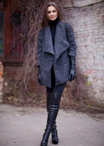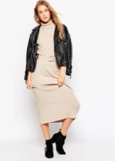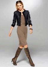 A coat is perfectly combined with all dresses without exception. Classical in the English style - for office or study. Overseas - for everyday life. Another option is a trench coat. Do not forget to pay attention to the fact that the dress does not stick out from under the outer clothing. Another wayant is a leather jacket-jacket.