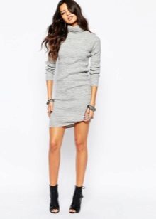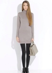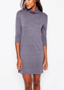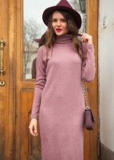 - Knitted turtleneck dress as an evening outfit. Choose a model above the knee. The muted light purple color is suitable for an evening out if we wear it in combination with high-heeled shoes. Add a bag on a long chain.