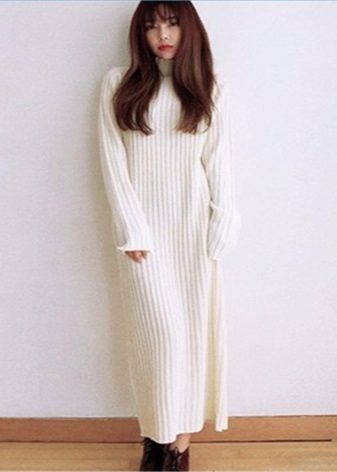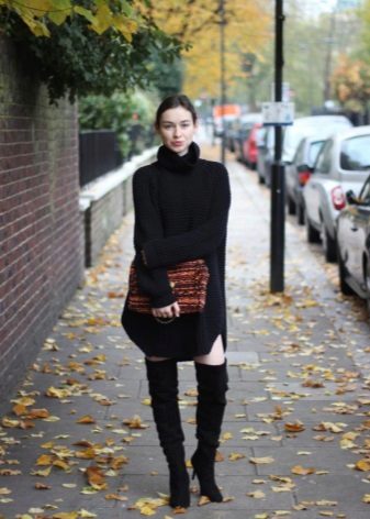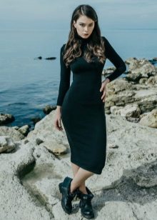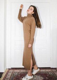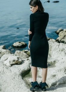 For a date, you can try the equally popular model of a turtleneck dress - a dress with slits. Typically, these dresses have an elongated style. It will give you femininity. Wear ankle boots, high heel shoes or boots.
