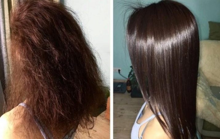 - After washing the hair, keratin products are applied to the lower part of the curls.
