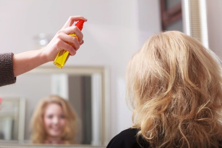 Deservedly gained spray styling with silicone. It is evenly distributed over the curls with a thin layer, does not enter into chemical reactions with perfumes, does not attract dust, protects the hair on the head from the effects of rain, overheated air when styling with a hairdryer, hot hair iron. It prevents the formation of lumps in the thickness of the hairstyle, the drying of the outer shell of keratin, preserves the natural color and luster.