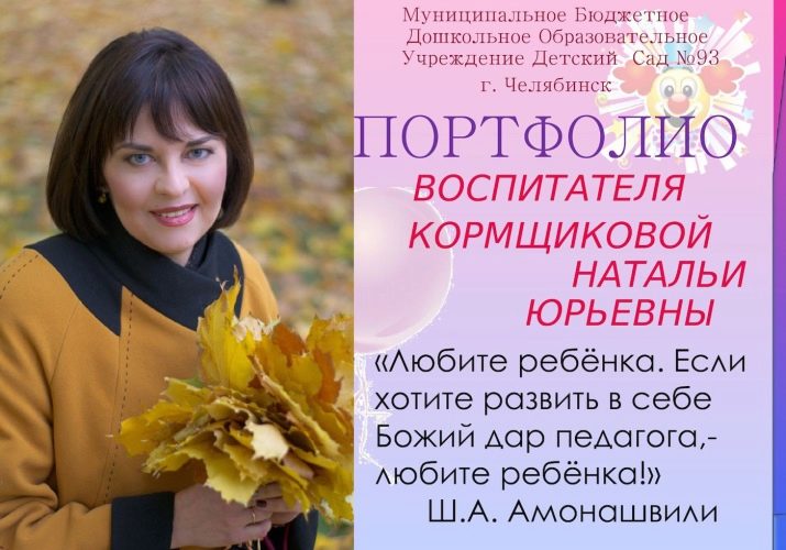 - portrait: includes a short essay on the topic "Me and my profession" and a description of the head of the DOW;