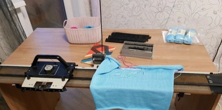 This is a single-loop knitting equipment designed for knitting warm winter items (hats, scarves, socks).It’s all about the carriage arrangement, the acceptable thickness of the yarn for which is 200 m. It belongs to class 5, the number of needles is 200, and 25 additional ones. The advantages of this unit are: