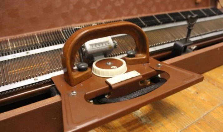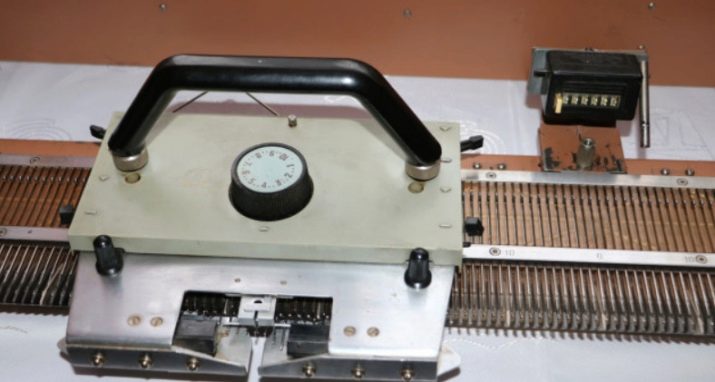 - Knit stitch counter. The row counter is needed to count the knitted rows of fabric and is located behind the needle bar.