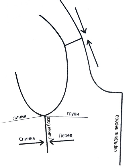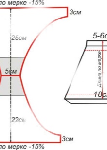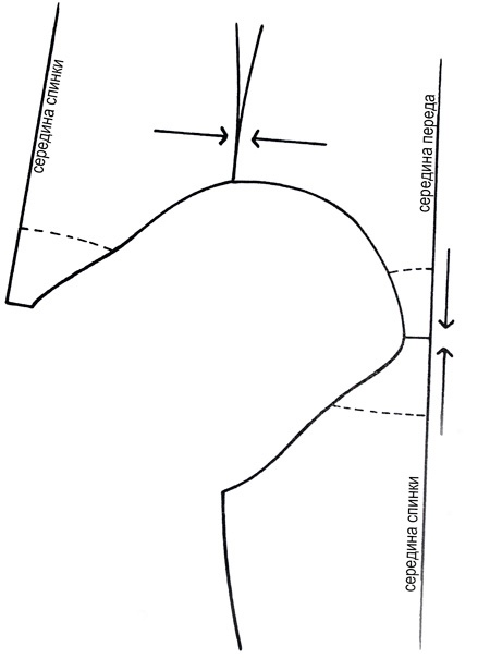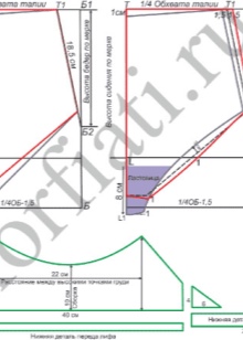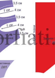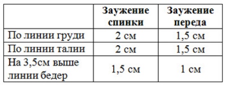 - Narrowing along the back: along the lines of the chest and waist - by 2 cm; along the line, 3.5 cm above the hips line - 1.5 cm.