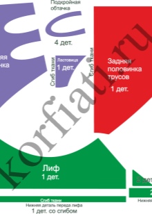 To sew the bottom of the leotard, you will need the same parts and materials that were used for the upper part. Since the fabric can shine through, it is better to do swimming trunks using two layers of the selected fabric.