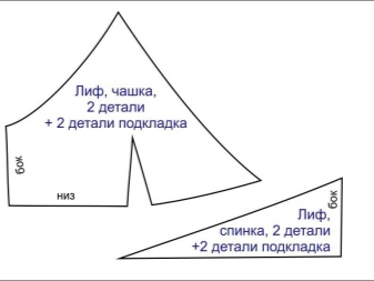 To sew a swimsuit with a bodice on the straps, make the following measurements: the perimeter of the chest along the lower part to the midline, longitudinal diameter. By these standards, the upper part of the leotard is embroidered with the addition of straps, a back strip and accessories. On the upper and lower parts of the cup are drawstrings for threading the ties.
