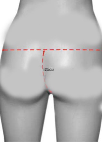- the first is located down along the middle of the back of the leotard (from the point of the length of the hyoid fold, we postpone ¼ the length of the seat + 1 cm);