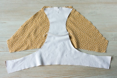 - We sew parts of the back to the cups, smoothing the allowances on the sides.