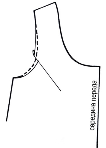 - Narrowing of the front: along the lines of the chest and waist - by 1.5 cm; along the line, 3.5 cm above the hips line - 1 cm.