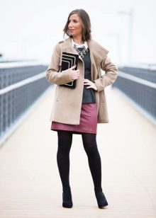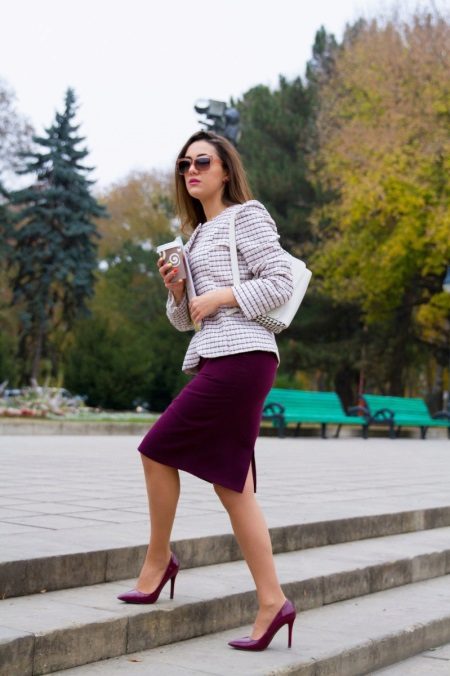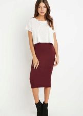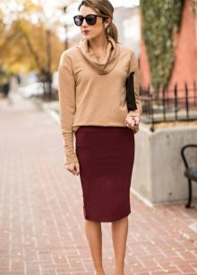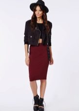 Knitted models of burgundy pencil skirts are perfect for creating images for every day. Outerwear may be different. A jacket, coat, jacket, frock coat or cloak - it does not matter what you choose, the main thing is that the color of the product is combined with the burgundy color.