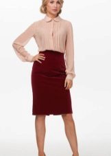 To create spectacular office bows, wear a burgundy skirt with blouses, shirts and tops in gray, black, white, dark green, blue or pale pink. A great addition to the office skirt will be jackets of these tones.