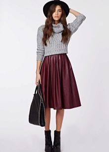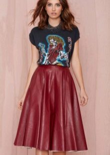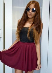 Skirt sun flare burgundy - A great option for young girls who can go to study, walks, meetings and parties in it. In this case, you need to try that the skirt was the main detail in the image and all its other details were selected for it. Ideal combinations with such a skirt are created using clothes and shoes in classic colors.