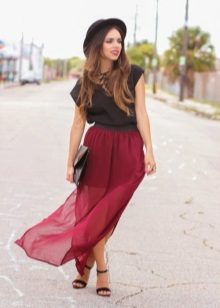 If long skirts always look beautiful and feminine, then long burgundy skirts are simply magnificent! Graceful, slender and very attractive silhouettes can be created with such a skirt. Create a stylish casual or chic solemn bow? - completely depends on your choice.