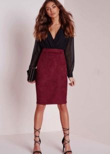 Burgundy Pencil Skirt always appropriate when creating business images. The fitting straight style of the skirt will emphasize the dignity of your figure, and its burgundy color will add an image of sophistication and romance. For business purposes, it is better to wear such a skirt with a blouse and a shirt made of light fabrics, jackets and with classic shoes. Leather skirts look especially impressive.