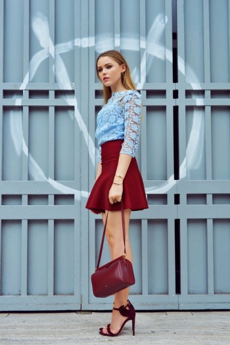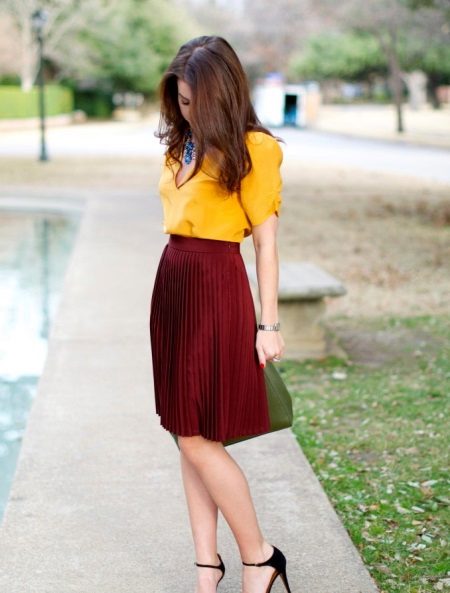 In addition, burgundy skirts can be combined with some vibrant colors, in particular yellow, golden and pink. So you get a lot of bright, elegant looks for every taste.