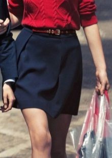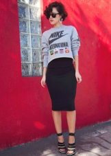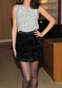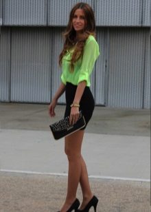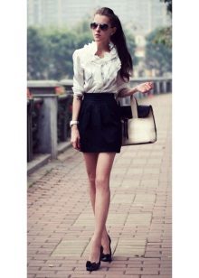 Such skirts are worn with seductive blouses and bright tops. Wearing a similar skirt with a strict blouse and classic boats, you will get an elegant look with a touch of seduction. A short black skirt is also used in sports style, if complemented by a T-shirt and sneakers.