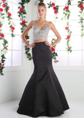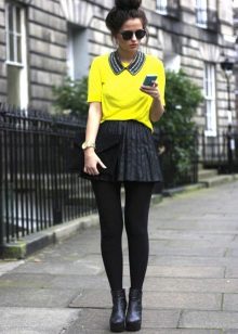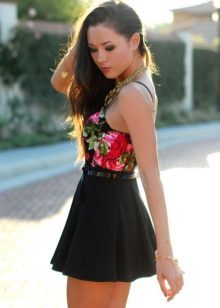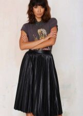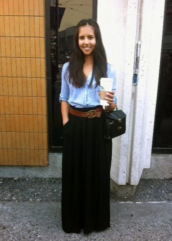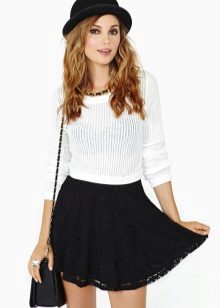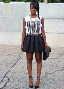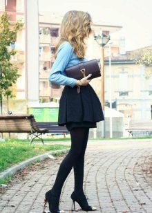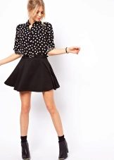 A black sun skirt can be complemented with a T-shirt, blouse, T-shirt, cropped top or sweater. Usually the top is tucked into the skirt, emphasizing the waist. A denim shirt is considered one of the successful additions to a black skirt.