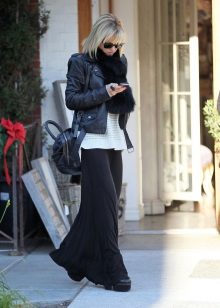 In addition, a long black skirt is often chosen for the winter period. In this case, it is combined with a light sweater or blouse with long sleeves, tight tights and high boots.