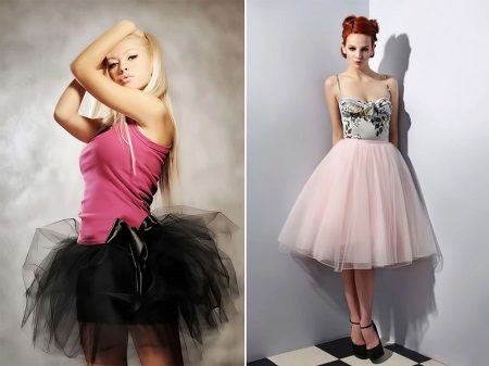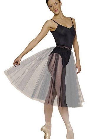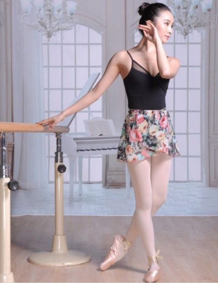 Ballerinas carry out their training in short and light skirts of a simple cut, for the sewing of which elastic fabric is used. Usually these are “sun” models that do not interfere with movement training. For performances, other skirts are used, the style of which is represented by a "bundle" or "chopstick". Their tailoring is made of materials that can hold their shape. It can be a grid, tulle, tulle and similar fabrics.