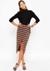 A similar skirt can be worn both at work, and at a party or celebration. For the manufacture of wrap skirts, fabrics with different textures and very diverse colors are used. Sewing of summer models is performed mainly from bright air and thin fabrics, and winter skirts with a smell are created from material with a high density without a pattern or with a striped or checkered print.