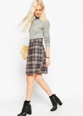 For sewing pleated skirts, materials capable of maintaining shape, such as linen or wool, are used. The color of the skirts of this type can be different, but the prints are most often represented by a cage or longitudinal stripes.