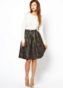 Products of this style are a bit like the sun, but the main difference is not cutting from a single piece of full, but from wedges. The number of such wedges varies and depends on the shape. Having picked up the appropriate number of wedges, the girl can perfectly fit the skirt to her figure, emphasizing the merits. Most often there are six-blades, but models of 4, 8 or 12 wedges are no less common. Such a skirt can be worn both at work and at a celebration.