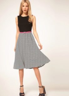 Such a skirt is one of the variations of the blade, combining the features of a flared skirt and a pencil style. In the upper part of the year-skirt, it is straight and sits on the figure, and then thanks to the set-in 4-12 wedges, it expands downward. In this case, the wedges come both from the same material, and from a completely different color or texture. The waist in the skirts-year can be understated or located above normal.