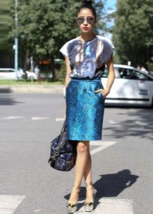 Modern skirts of this style are not only strict, but also finished with drapery, shuttlecock, embroidery, pleats and other additional elements. In addition, a cut on such a skirt can be present both from the sides and the front.