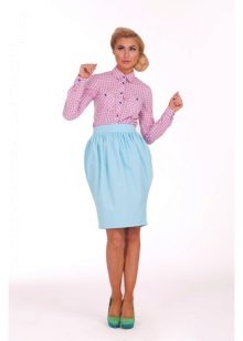 The main difference between the products of this style is the presence of additional volume both at the bottom of the skirt and at the waist. The barrel skirt always has a lining, because it is precisely due to the different widths of the main fabric and the lining material that the assemblies and folds are formed at the bottom of the models, which make the skirt resemble a barrel. The length of such skirts is often midi or mini, while short skirts are more often chosen by young girls. You can combine a barrel skirt with a top, T-shirt, blouse, turtleneck or longsleeve.