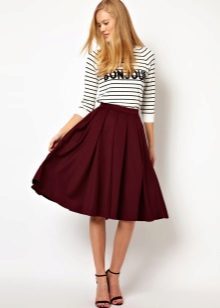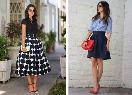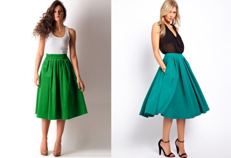 Flared skirts appeared in women's wardrobes in the 19th century in the 20s and initially had only a large length. Unlike the sun skirt, the flared models are narrow at the top, and from the middle part of the hips they expand due to the presence of wedges. Modern flared skirts are short, medium length and to the floor, and the number of wedges in different models is different.