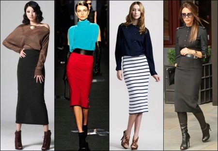 - Pencil Skirts. In them, the hourglass figure will look especially attractive due to the emphasis on the waist. The optimal length is a few centimeters below the knees.