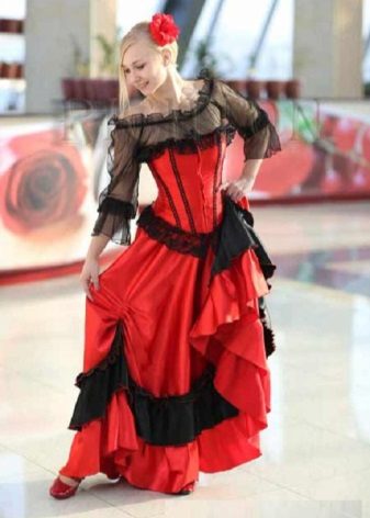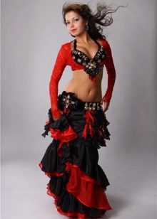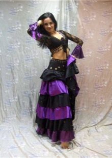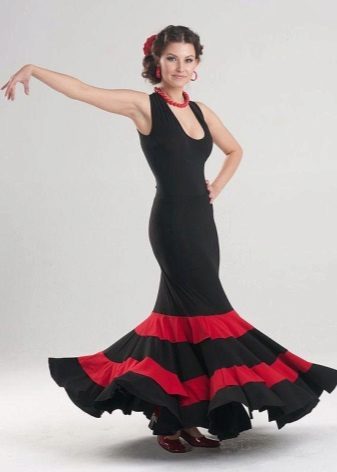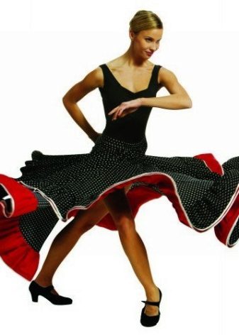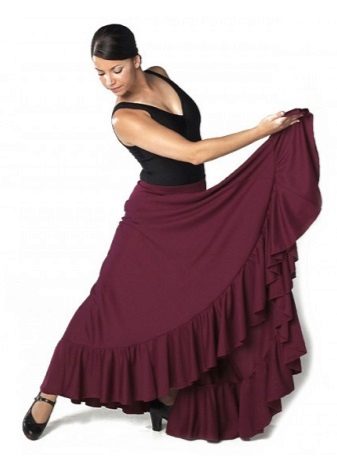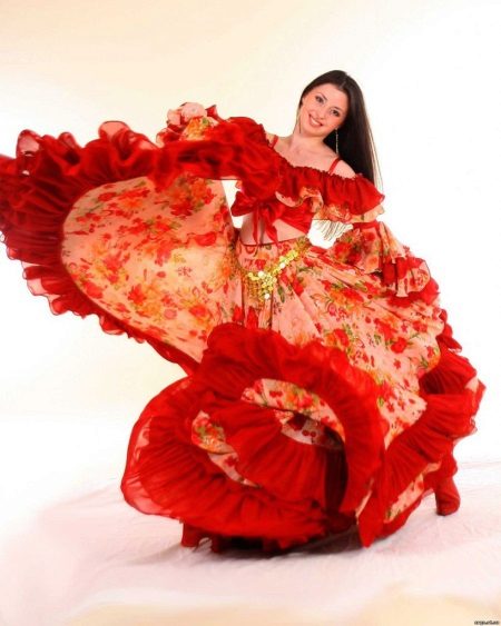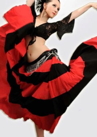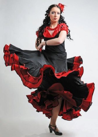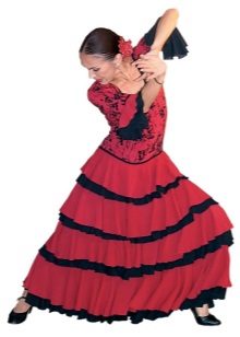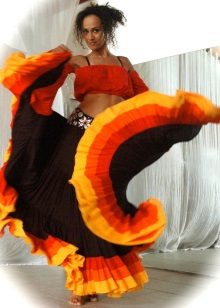 There are two main varieties of outfits for flamenco - these are special dresses or skirts. The latter can also be classified into two styles. The first option is the so-called gypsy costume. This is a multi-layered skirt, fitting hips and expanding just above the knee.