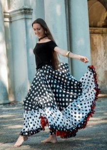 In the matter of choosing a costume for flamenco, the skirt significantly outperforms the dress for one simple reason - it is more practical. Changing only the top, the dancer will have a lot of options for the stage image. It is simpler and more profitable than sewing several dresses.