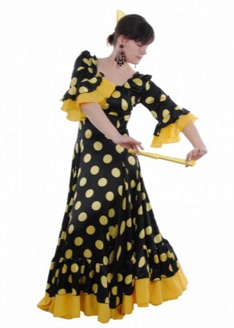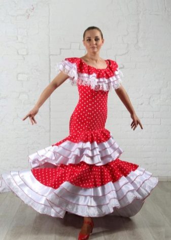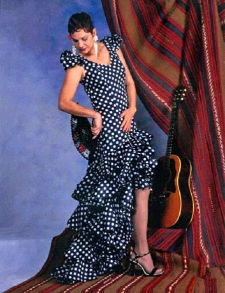 It is this version of the costume for flamenco that can be found in a variety of color variations, they are often sewn from fabric to large peas.