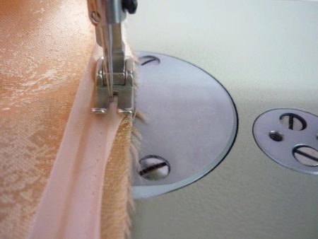 When all 15 pieces are ready, sew them together to make one tape. Process the finished shuttlecock with an inlay (it is cut in half, the edge of the shuttlecock is inward; bast, stitch).