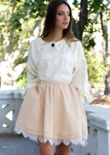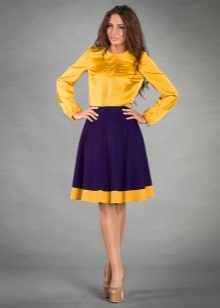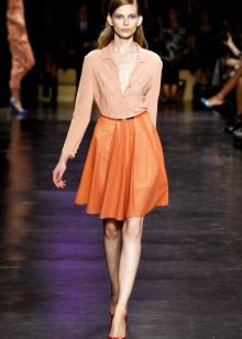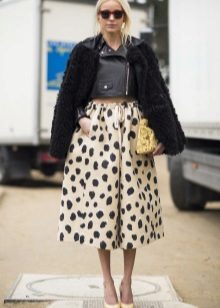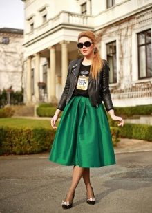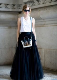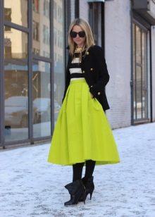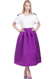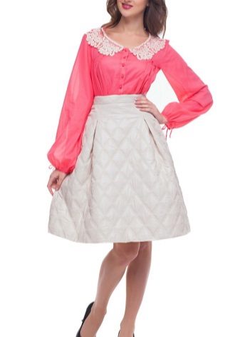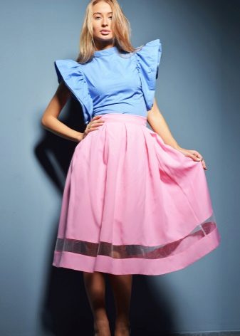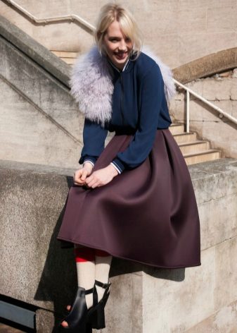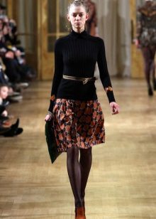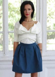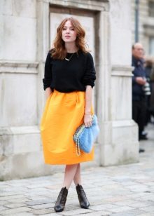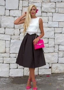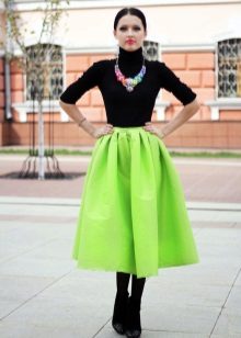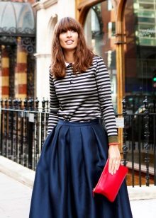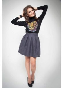 A voluminous bell skirt will not look with a magnificent top - a straight cut of tops and blouses will be appropriate here. You can also wear simple turtlenecks, T-shirts and T-shirts.