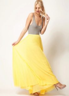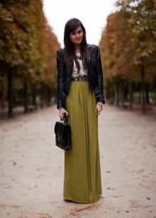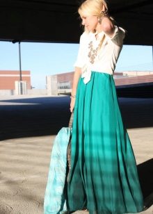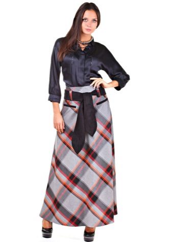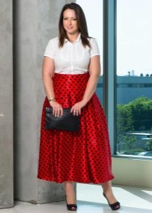 The maximum length will make it possible to wear a skirt for girls with O-shaped legs. By type of physique, she will suit both slender and plump girls, because with the help of splendor, you can adjust the width of the hips. Also, a bell skirt to the heels can visually increase growth, but for this you need to choose high-rise models and high-heeled shoes.