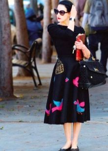 We must not forget that the bell-shaped skirt is a very bright part of the wardrobe, and to avoid excessive pomp, the emphasis should be on bright details - such as a handbag, belt or beads.