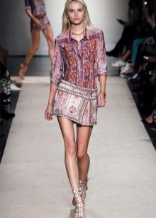 Skirts with abstractions that create color in the image will never disappear from the catwalks. Flowers on fabric are also always relevant, especially in the summer seasons. But the novelty in the collections today is ethno-style, the basis of which is comfort and simplicity.