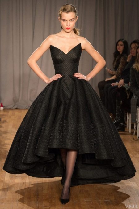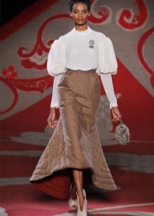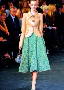 The collections of Christian Dior and Oscar de la Rent often show bell-shaped skirts with a voluminous style, with a train at the back and shortened in front.